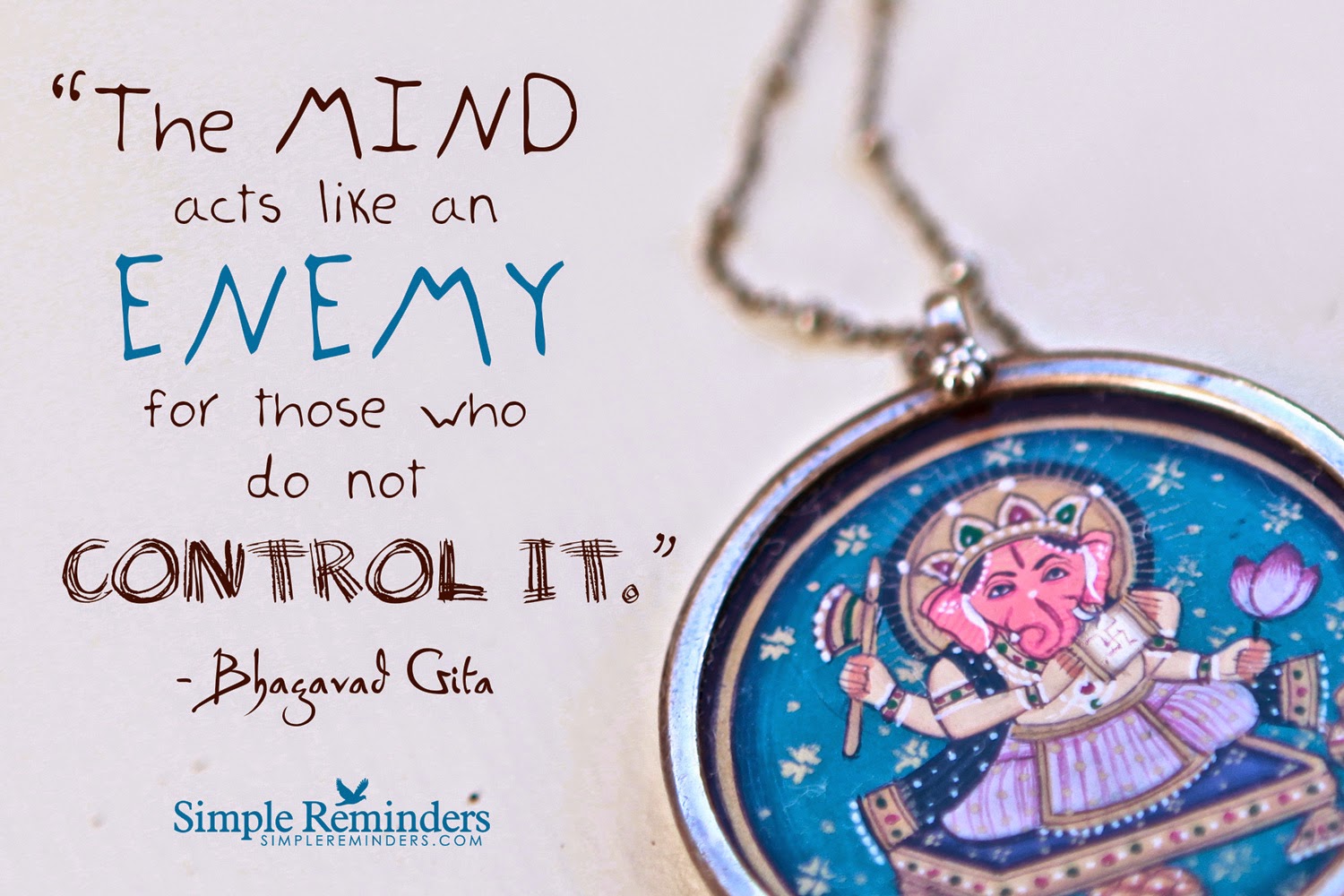 Koliko je važno kontrolirati um iz kojeg lepršaju podivljale misli kaže i Bhagavd Gita: Onome tko je ovladao umom, um je najbolji prijatelj, ali onome tko to nije učinio, um će ostati najveći neprijatelj. Nedvojbeno je da je to težak posao. A što nije na ovome svijetu? Ali samo onaj tko uspije u tom naumu dostiže Tao, Nirvanu, Raj ili biva sa Bogom osobno.
