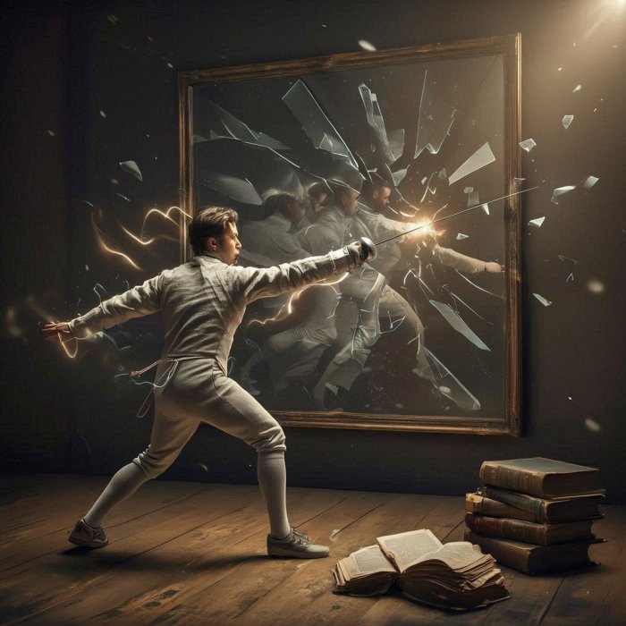Postoje mnogi koji, kaže stara mudrost, možda i ne trebaju mnogo vježbe, ali trebaju čišćenje duha i tijela kako bi »drugim očima« gle- dali i razumjeli obični zemaljski život. Jer, i mačevanje koje nekome zvuči, izgleda ili mu se zbog manipulacije prikazuje kao »nadnaravna« vještina, mora zapravo biti vezano uz stvarni život, stvarnog čovjeka i ljudske, zemaljske, ciljeve.