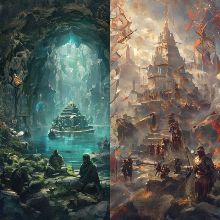 Čak niti disciplina i trening, koji su išli ruku pod ruku sa stvaranjem arijske rase, nisu bili dovoljni za odbijanje utjecaja zlih sila. Dvije različite grupe arijevskih naroda, vođene odmetničkim posvećenicima proročišta, posvetile su se obožavanju zla i u brdima su uspostavile svoje zajednice, koje su jednom potonule u valovima Atlantskog oceana u blizini Islanda. Iz njihovih krvoločnih i okrutnih kultova proizišla je legenda o Thuli. Ti posvećenici na sličan su način preživjeli katastrofu u Bibliji opisanu kao opći potop. Oni su se također preko Europe zaputili na istok u Aziju i smjestili se na Tibetu u dvije ogromne spilje podno brdskog svetišta "Sunčanog proročišta", odakle su viši posvećenici otada, snagom svoje mudrosti, upravljali kulturama postatlantidskog doba.