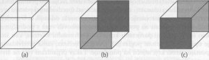 Slika 11.1. (a) optički dvosmislena Neckerova kocka, (b, c) Dva načina na koje se ova iluzija može gledati, ali nikad istodobno.