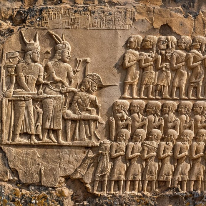 U južnom Elamu pronađena je scena uklesana u kamenu u kojoj se prikazuje neka vrsta "laboratorije". Bogovi rade u njoj, a kao rezultati su redovi i redovi ljudskih bića koji su identični.