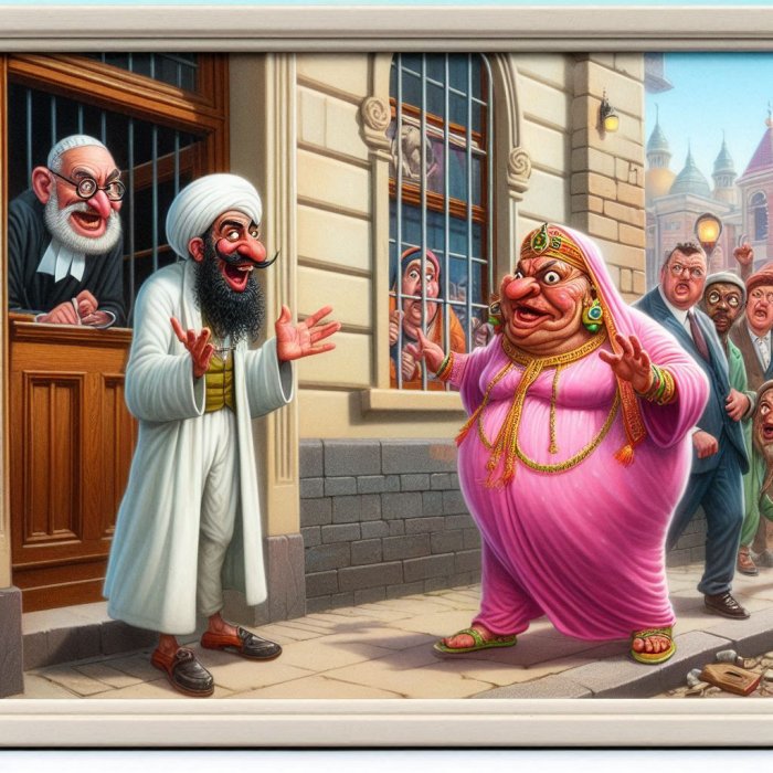Mula Nasrudin je uhvaćen i izveden na sud, a kada je izlazio iz zgrade, rekao je prijatelju: “Bilo je stvarno teško: sud me prvo osudio na pedeset rupija, jer sam poljubio neku strankinju na putu. Zbog toga me je sudac kaznio sa samo pedeset rupija, ali kada je vidio tu ženu, tražio me je još toliko novca, jer je zaključio da sam bio mrtav pijan!” Zbog toga što ta žena gotovo da i nije bila žena; njena ružnoća bila je zastrašujuća, i sudac je shvatio da je nitko trijezan ne bi napastvovao!