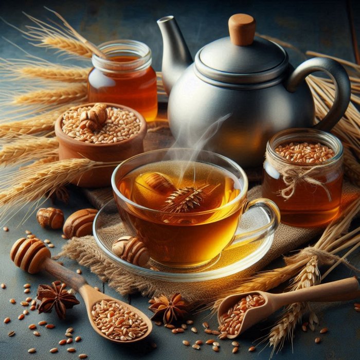 Ovaj čaj liječi slijedeće: artitis, reumatsku groznicu i neke vrste raka, bogat je vitaminima B-kompleksa, liječi i viruse a i pržena zrna pšenice dobra su za čišćenje cijelog tijela.