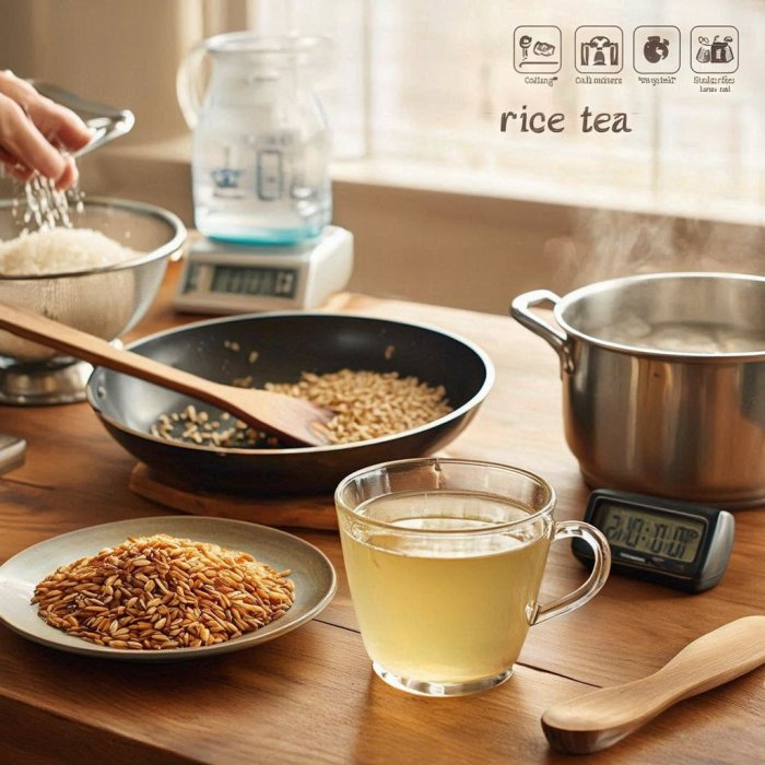 Čaj od riže najviše se pije za vrijeme velikih vrućina, jer regulira temperaturu u tijelu. Ovaj čaj umiruje živce, zaustavlja proljev, a koristi se i protiv glavobolje, kao i u slučaju menstrualnih tegoba. Dobro je sredstvo za čišćenje crijeva, snižava krvni tlak, a dobar je i za jačanje kose, zubi, noktiju i kosti. Štiti od kardiovaskularnih oboljenja.