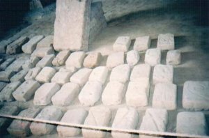 teskih i po nekoliko stotina tona … medju kojima nema dva iste velicine … bez vezivnog materijala …