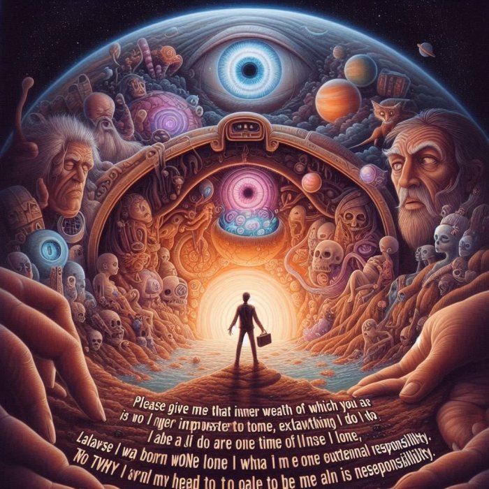 “Molim te, daj mi ono unutrašnje bogatstvo o kojem si mi govorio, jer me vanjske stvari ne zanimaju više. Dopusti mi da budem razbojnik unutrašnjeg svijeta, zbog toga što sam maločas shvatio da sam sam, i da je svako moje djelo samo moja odgovornost - nitko ne želi da sa mnom podjeli ono što činim. Rođen sam usamljen, umrijeti ću sam, te je sve što radim isključivo moja osobna odgovornost. Zato je krajnje vrijeme da se zaputim ka unutra i pronađem tko sam. S glupostima je svršeno!”