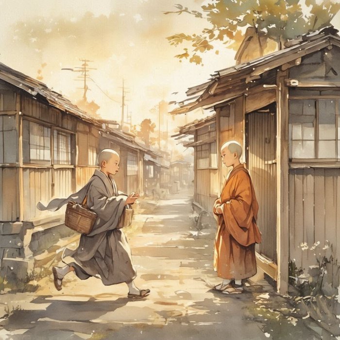 bila jednom dva zen-samostana, jedan pored drugog, i svaki sa po jednim mladim novakom. Svakog jutra na svom putu do trznice, jedan bi novak potrcao kraj drugog.