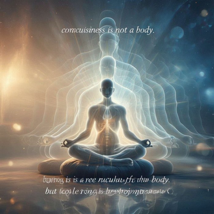 Svesnost nije telo. Bivanje jeste rezultat tela, ali bivanje je sveprisutno. Sama svesnost