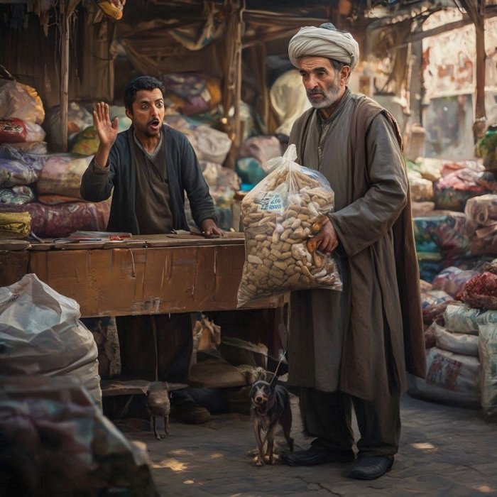 Kada je od Nasrudina čuo što ovaj naručuje, mjesni prodavač bio je zapanjen: “Komšija, što to radiš? Ja znam da je tvoj pas zaista mali što će njemu tolika hrana?”