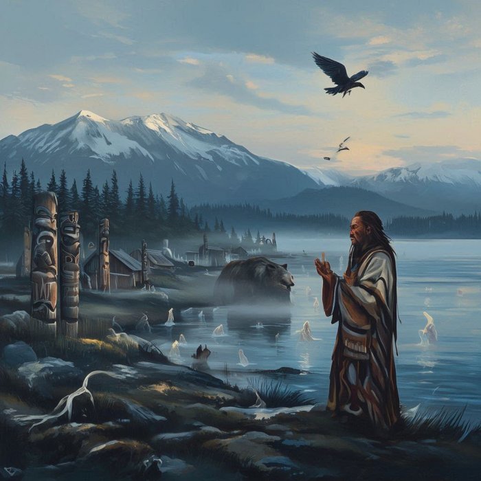 Indijansko pleme Tlingit, koje je nekoć živjelo na velikom području uz sjeverozapadnu obalu Sjeverne Amerike, danas uglavnom nastanjuju jugoistočnu Aljasku. Tlingiti vjeruju da sva živa bića, uključujući ljude i životinje, imaju dušu. Duše nazivaju