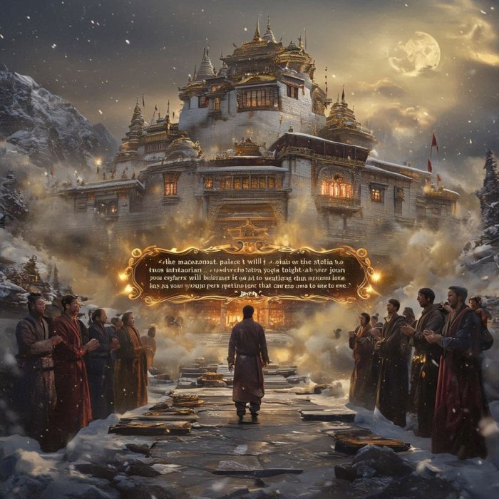 Ponosno sam ušao u palatu koja je bajkovito blistala na hladnom himalajskom suncu i potražio svog učitelja. On je i dalje sedeo na prestolu okružen mnogobrojnim učenicima koji su ćutali.