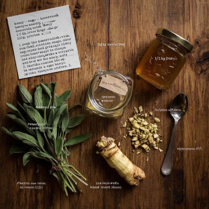 1. Hren ogulliti, nareskati na sitno i zajedno sa cistim listovima kadulje samljeti.
