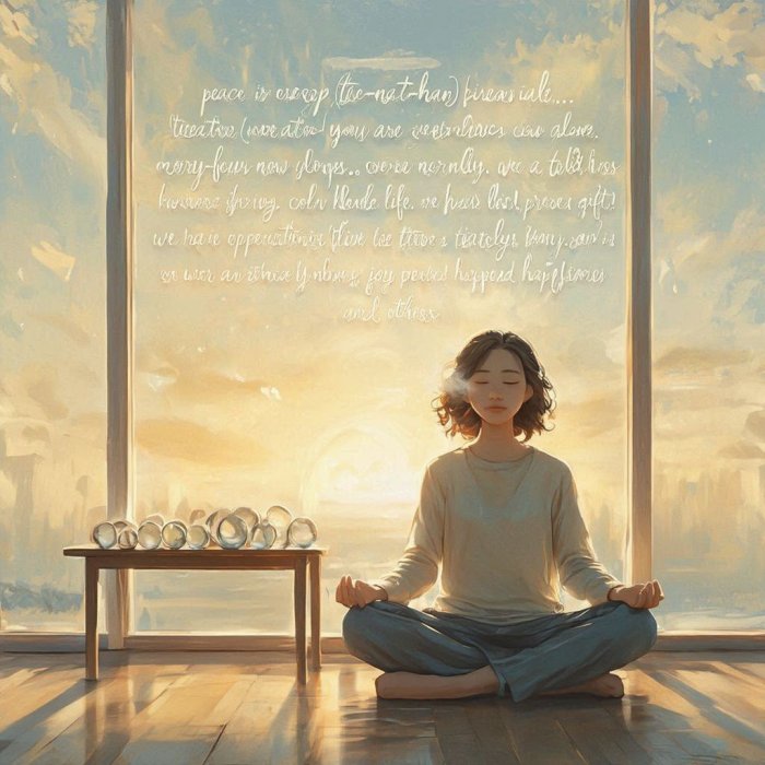mir. Mir i sreća su dostupni u svakom trenutku. Mir je svaki korak. Treba da koračamo