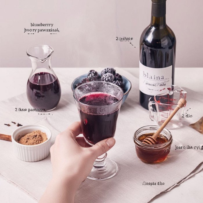 3. U toplom (nipošto vrućem) kuhanom vinu razmutite med. Smjesu kupina i soka od borovnice procijedite i dodajte. Energično promiješajte.