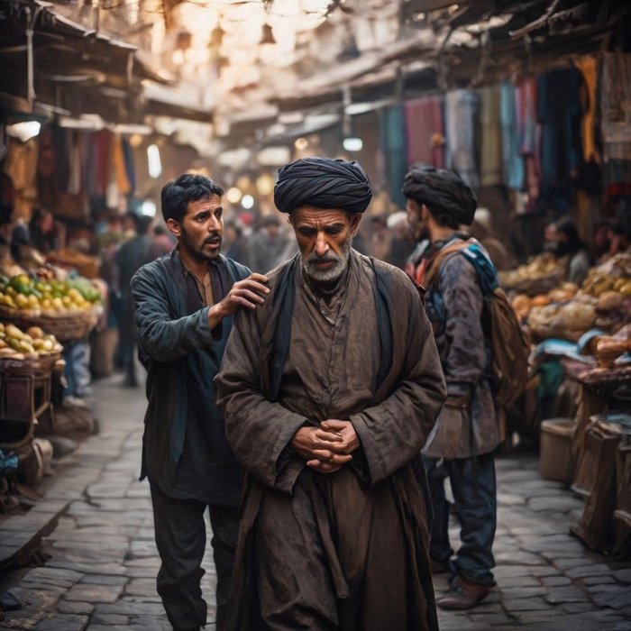 Jednoga jutra, Mula Nasrudin je šetao po tržnici sasvim utučen. Prijatelj koji ga je vidio takvog, nije mogao da povjeruje svoj im očima: “Prijatelju moj, što se to dogodilo? - Nikada te nisam vidio u takvom stanju”.