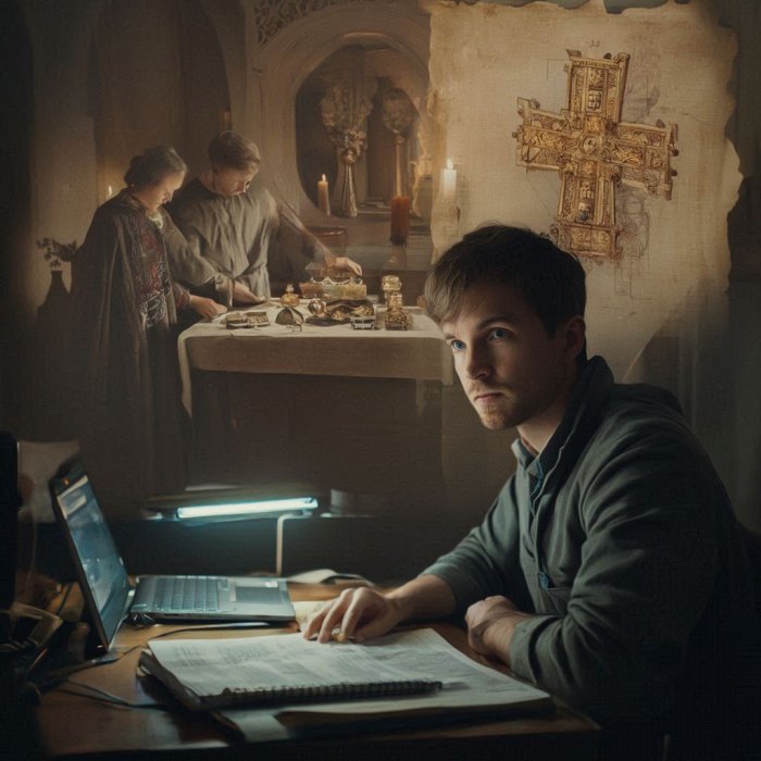 Mladi austrijski znanstvenik, koji je istraživao svoj raniji život u karolinško doba, točno se mogao sjetiti kako su Hugo i njegova žena Aba relikvije čuvali u kapeli u svom zamku, razmišljajući pritom kamo bi dragocjeni predmeti trebali biti poslani. I mogao se sjetiti kako je Hugo zamislio križ u kojem su relikvije trebale biti prevezene.