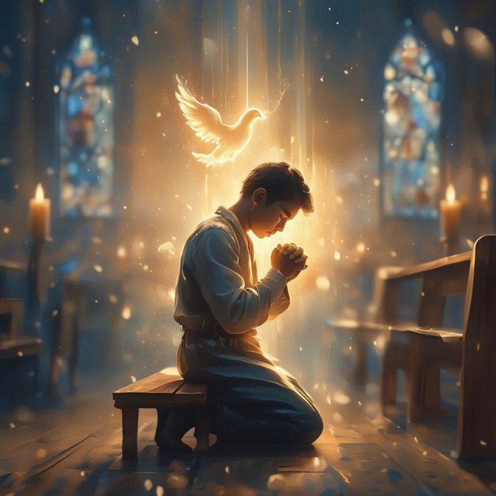 124. Iza ova ĉetiri oblika molitve sledi neko najuzvišenije molitveno stanje koje se sastoji u sagledavanjujedinoga Boga i u plamenoj ljubavi prema Njemu. U njemu um naš, obuzet i proţet ovom ljubavlju, besedi sa Bogom na najprisniji naĉin i sa naroĉitom iskrenošću. Molitva Gospodnja: Oĉe naš (Mt.6,9-13) nam saopštava da sa revnošću treba da ištemo to stanje.