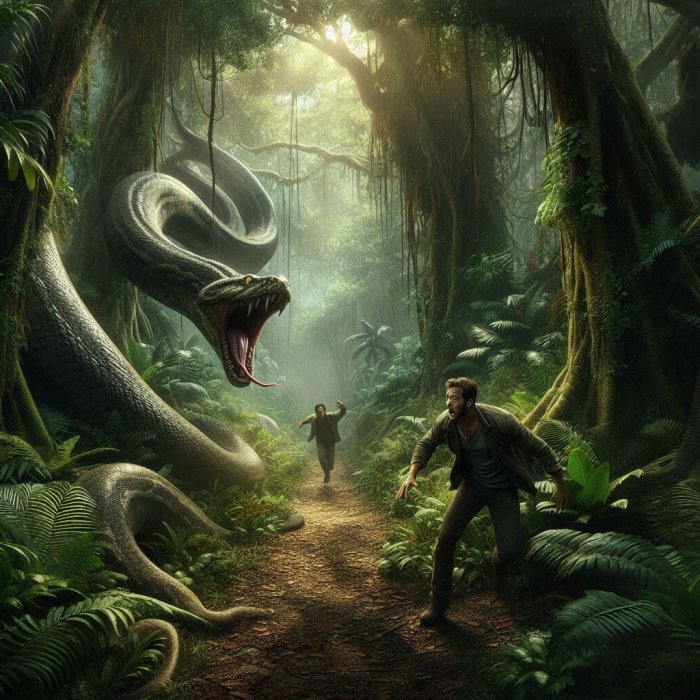 Dva su čoveka hodala stazom kroz džunglu. Jedan od njih išao je dosta ispred drugog. Iznenada ga je zgrabio ogroman piton i počeo da ga guta. Drugi je čovek oklevao i ukopao se u mestu. Prvi čovek, sa polovinom tela već progutanom, poče da viče na drugog: «Budalo, zašto stojiš tu tako neodlučan? Dođi, ja sam ovde da te vodim i štitim.»