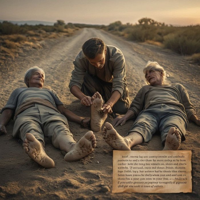 Dva su čoveka putovala seoskim drumom. Jedan od njih je jauknuo, uhvatio se za nogu i seo na zemlju. Trpeo je bol od velikog trna koji mu se zabio u stopalo. Nije bio u stanju ni da podigne nogu. Drugi čovek je nastavio da hoda, a onda je počeo da viče na prvog: «Hajde, budalo, počinje da se smrkava. Ako ne potrčiš prema meni, nećemo stići do odredišta pre mraka.» Ovaj mu odgovori: «Ne, druže; ne mogu ni da mrdnem dok mi je ovaj trn u nozi.» «Zašto dižeš toliku galamu? Hajde, ustaj ili ću otići», brecnu se njegov saputnik i udalji se još par stotina metara. No, odmah zatim i on je nagazio na trn i previjajući se od bola seo na zemlju. Pošto je svaki dodir povećavao bol, nisu mogli sami da izvade trnje iz tabana. Podnosili su istu patnju, ali razdvojeni jedan od drugoga zbog neljubaznosti i sprečeni da jedan drugom pomognu! Obojica su ležali tamo dok nije naišao treći putnik i izvadio im trnje iz tabana, a zatim im rekao: «Prijatelji, ožiljcima se rugaju samo oni koji nikada nisu bili ranjeni. Da si uklonio trn iz noge drugoga, on bi te pratio i pomogao bi ti kada si ti imao trn u nozi. I tako biste brzo napredovali ka cilju, ne ignorišući tuđi bol.»