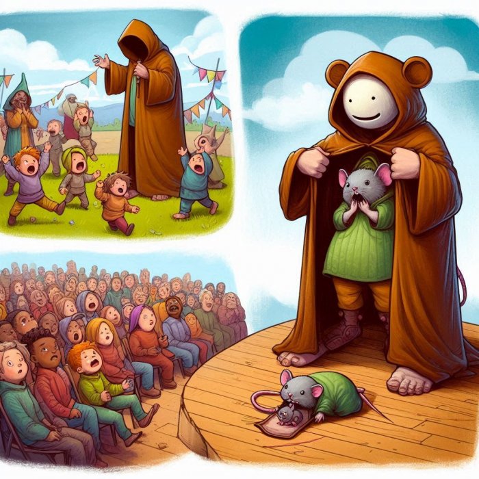 Dečak se kostimirao u strašnog diva i otišao na igralište gde su bila druga deca. Ispuštao je grozne krike i dečaci su pobegli, uplašeni od tog demona. Iznenada je preobučeni dečak počeo glasno da cvili. Pao je na zemlju i ispuzao iz kostima. Unutar kostima bio je jedan miš, i dečak ga se strašno uplašio!