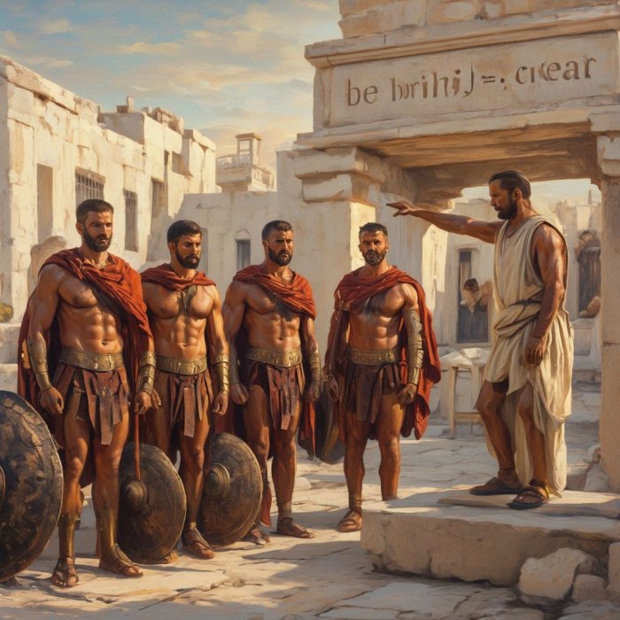 Postoji jedna priča koja ovo ilustruje. U severnoj Grčkoj je kralj Filip, otac Aleksandra Velikog, vladao teritorijom zvanom Makedonija. Filip je želeo da osvoji celu Grčku. Zato je skupio vojsku od više legija i upao u mnoge susedne države. Zatim je poslao poruku vladaru Spartanaca zahtevajući da ovaj prizna njegovu vrhovnu vlast nad Lakonijom. U isti mah, upozoravao je da će ih, ako mu se Spartanci ne budu povinovali, njegova vojska uništiti.