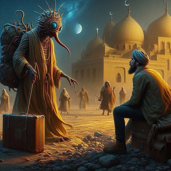 Jedan putnik je putujući po Srednjem Istoku sreo čudno stvorenje. «Ko si ti», zapitao ga je, «i gde si se zaputio?» «Ja sam Kolera. Idem da pobijem pet hiljada ljudi u Egiptu», reče mu neznanac i produži svoje putovanje. Nekoliko godina kasnije desilo se da su se ponovo sreli. Onaj prvi reče drugome: «Rekao si mi da ćeš pobiti samo pet hiljada ljudi, ali umesto toga si pobio pedeset hiljada.» «Ne, ne», uzvrati ovaj, «ja sam pobio samo pet hiljada, a ostali su umrli od straha.»