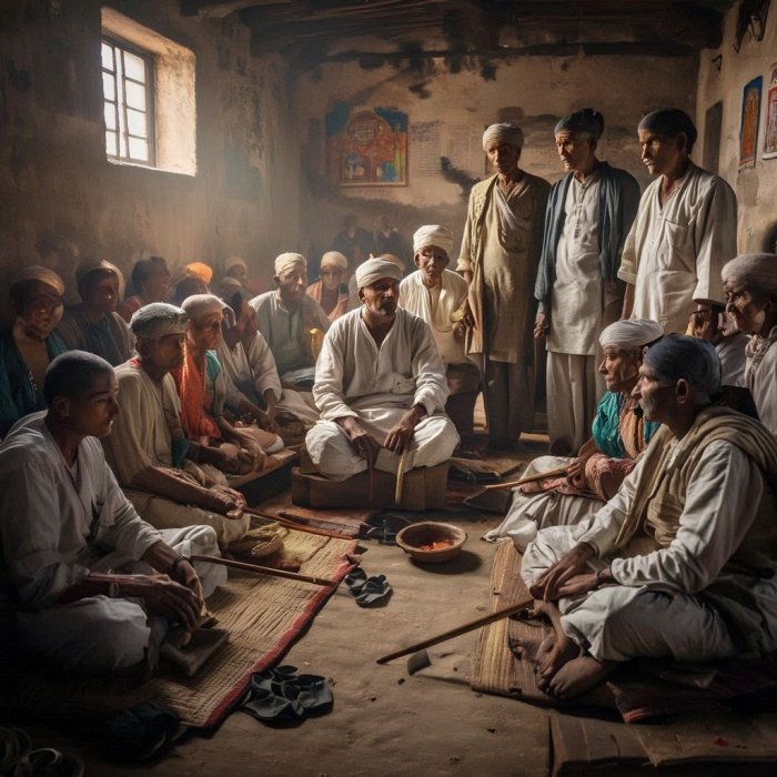 Pedeset slepih ljudi sedelo je u darmašali (objektu za privremeni smeštaj hodočasnika). Svi su bili od rođenja slepi, i svi su želeli da otputuju u izvesno udaljeno mesto hodočašća. Došla su još četiri slepca i priključila se ovoj grupi. Rekoše da i oni idu u isto mesto. «Prijatelji», reče vođa pedesetorice, «mi smo slepi i ne možemo sami da nađemo put do svetilišta. Hoćete li biti u stanju da nas vodite? Da li vaše oči vide?» «Da, dragi prijatelji», odgovoriše četvorica, «mnogo smo slušali o svetom gradu i putu kojim se do njega stiže. Imamo jasnu mentalnu sliku tog puta. Mada ga ne vidimo svojim očima, uvereni smo da ne samo da ćemo mi stići na odredište, nego da ćemo i sve vas odvesti tamo sa nama. Sledite nas.» Vezali su se jedan za drugog dugim konopcem. Najbolji od četvorice predvodio ih je. On je, bez sumnje, imao mentalnu zamisao o putu; ali to nije bilo od naročite koristi. I sebe i njih je doveo u zabludu, i uskoro je pao u duboki klanac. Vezani za njega, drugi su se slepci, ne znajući gde ih on vodi, takođe jedan za drugim stropoštali za njim. I svi do jednog su izginuli.