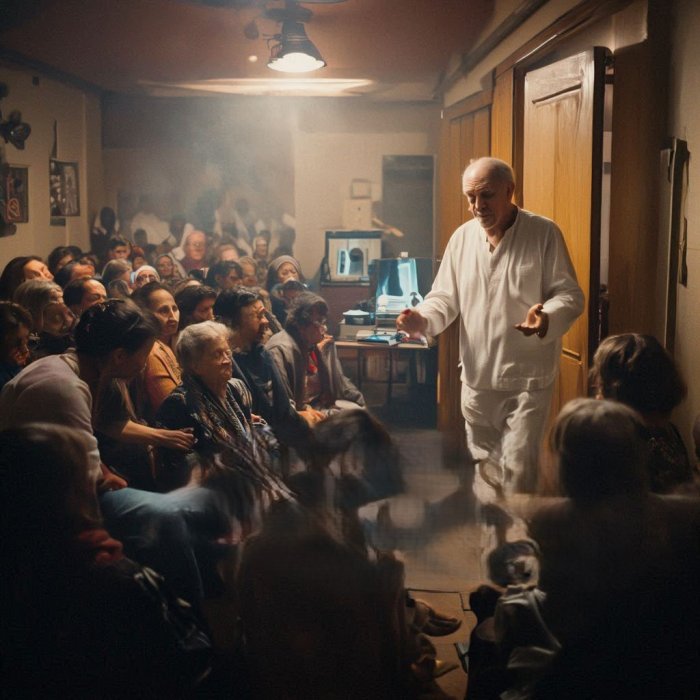 Nakon što prođu pokraj medija u drugoj sobi strujanja, pacijenti stižu pred Ivana od Boga, koji sjedi na stolcu prekrivenim bijelom tkaninom.