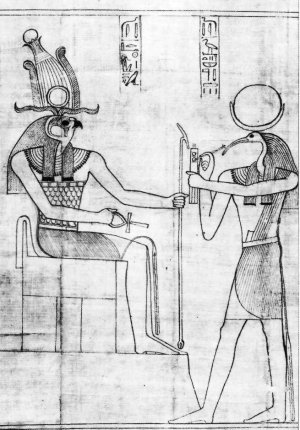 glasnik, izumitelj magije i pisma, stoji pred bogom Ra. Grci su Thota edna avali s Hermesom. Knji.Znica njegovog hrama u Hermopolisu bila je uvena po djelima o magiji i egipatskoj povijesti.