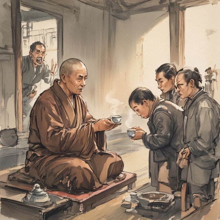 Bez obzira jesu li prije tu bili ili ne, Chao-chou nije pravio razliku medju njima i sve ih je ponudio cajem. Iako je salica caja samo jedan izraz obicnog uma, ona je kljuc zena.