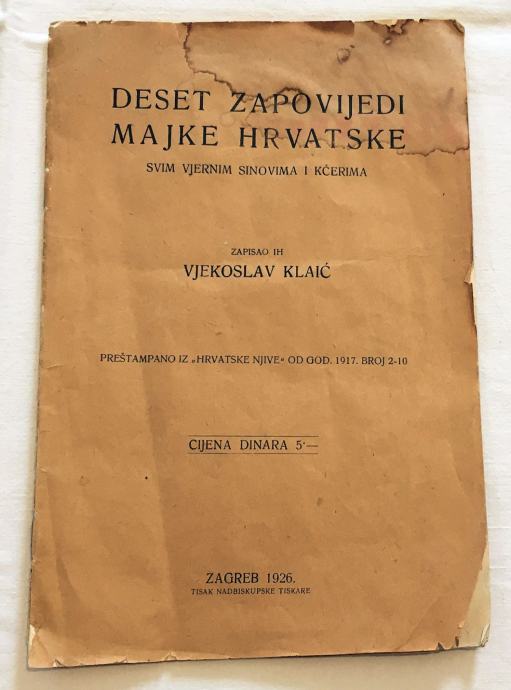 Pomaži ne samo Hrvatu, nego i svemu, što je hrvatsko. Podupiraj hrvatsku knjigu, hrvatsko slikarstvo i kiparstvo, hrvatsku pjesmu i glazbu, hrvatske družine i zborove; pomaži svemu, što promiče napredak, čast, sreću i slavu hrvatskoga naroda i domovine. U današnje doba, gdje svaka ptica k svojem jatu leti, gradi i kiti samo svoje gnijezdu. U tudje međutim ne diraj; ali zašto da pomažeš tudjinu, često jačemu i imućnijemu, a u tvojoj kući gola sirotinja vapi za svagdanjim hljebom. Ljubi brata Hrvata i pomaži mu, jer zgodno veli stara narodna: “Tko ne priznaje brata za brata, priznat će tudjina za gospodara.”