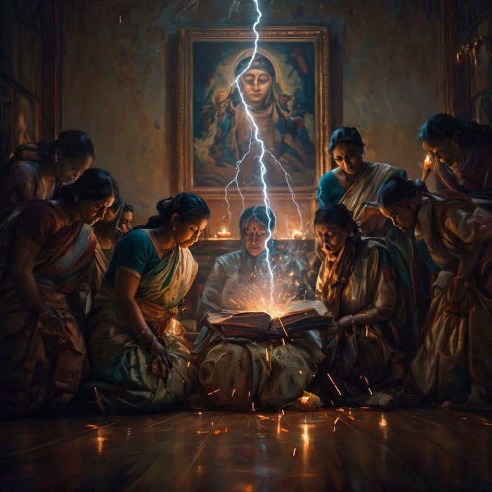 “Lahiri Mahasaya, zaštiti nas!” Žene su se poklonile pred slikom. Grom je pogodio knjigu koju su čitale, ali žene su ostale neozleđene.