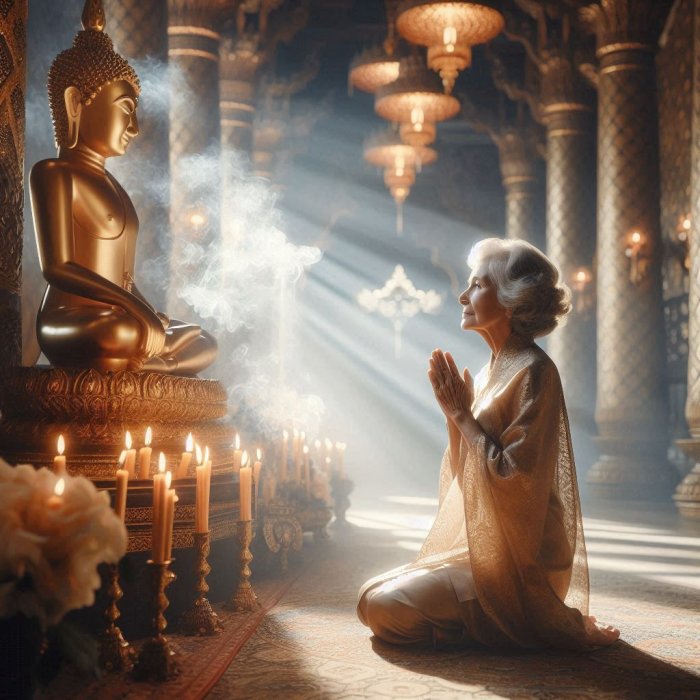 Bila jednom neka imucna starica koja je cesto dolazila u hram i molila se i palila tamjan, klececi ispred bude, uvijek bi govorila.