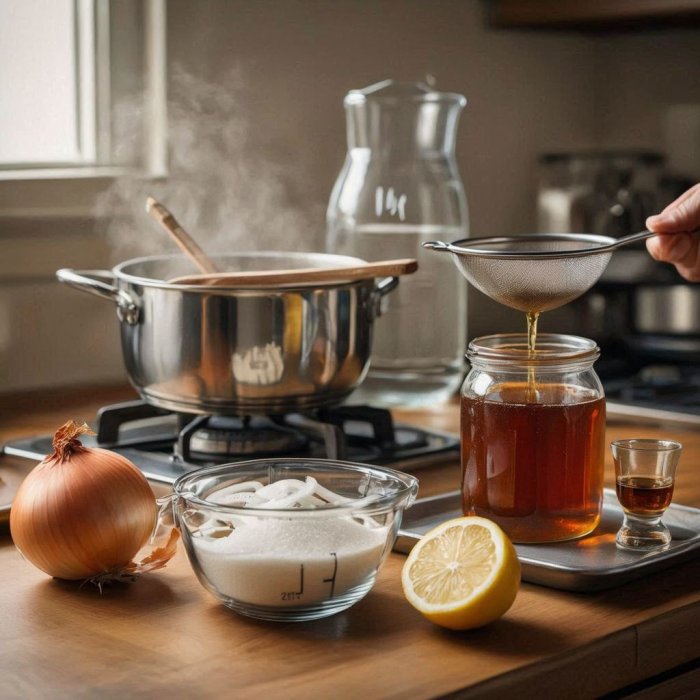 Još jedan sirup protiv kašlja, za koji verovatno većina zna. Do sada sam ga pravila tako što sam prvo pržila šećer i luk, pa kasnije nalivala vodu i davala deci da ga piju kao čaj, a sada sam ga pravila u vidu sirupa, kako ne bih morala svaki put prilikom kuvanja da se borim sa onim teškim mirisom luka.