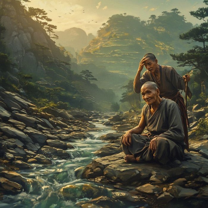 Nakon sto je postigao prosvetljenje, redovnik Ta-mei otisao je u planine provoditi samotnicki zivot.Jednoga dana, neki lutajuci redovnik izgubi se i nabasa na njega.