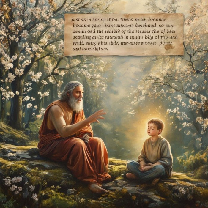Drevno nasleđe to slikovito pokazuje ovako: "Kao što čovek u čvrstom zagrljaju sa svojom ženom ne zna ni za šta spolja ili iznutra, tako ni osoba u čvrstom zagrljaju stvarnog Sopstva ne zna ni za šta spolja ili iznutra." Da ovo nije nesvesnost, ističe se u jednom kasnijem poglavlju. "Gledajući, On ne vidi. Svakako, vid Posmatrača nikada ne slabi, jer je neuništiv. Ali, ne postoji drugi objekat kojeg bi video odvojeno od Sebe."
