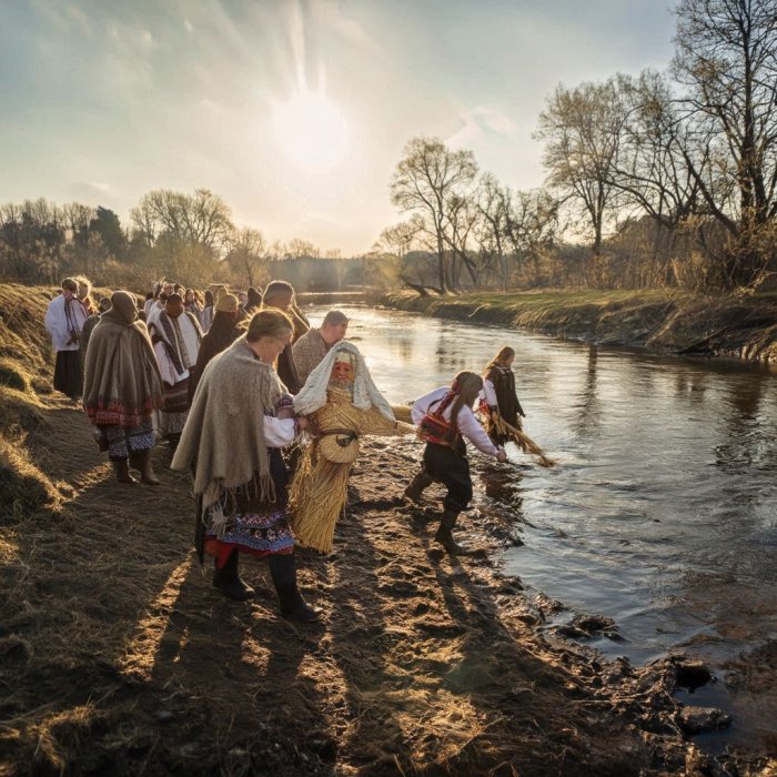 U martu mjesecu, u prodolima Štajerske, na zapadnoj megji našeg naroda, još se slavi velika pobjeda ljeta nad zimom; a taj je običaj onamo ostao, valjda, od Slavena. Mladi seljaci, u prve dana marta, obuku se u lagane ljetne odjeće, prihvate srpove i motike, stanu u kolo, pa idu na kolo protivničko drugih momaka, koji imaju na sebi zimske svoje haljine, a u rukama drže grablje. Megju proljetnim i zimskim kolom bije se boj, u taktičnom kretanju. Zimski pobornici bacaju se grudama