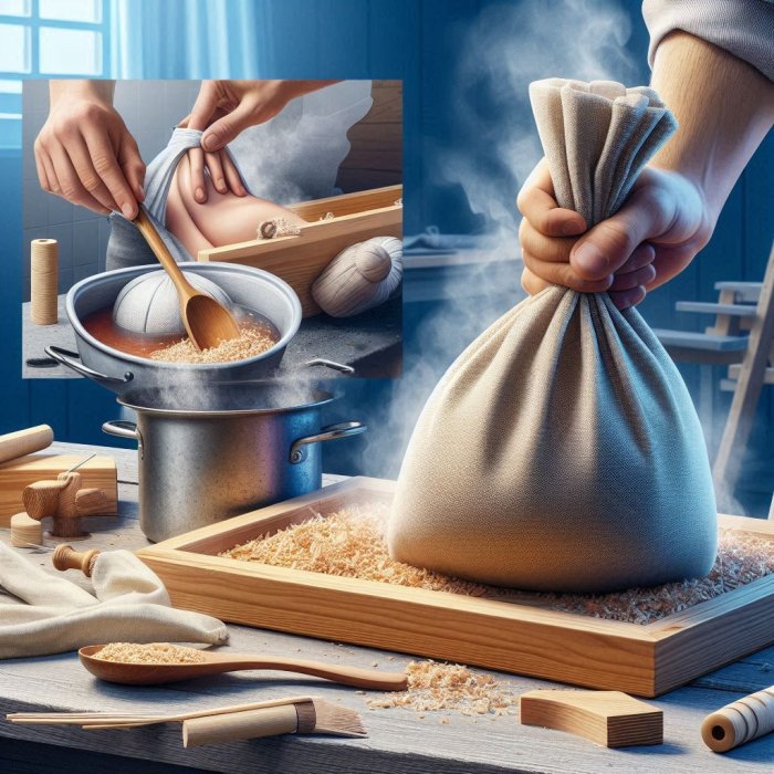 Treba sašiti jednu platnenu vrećicu. Kod stolara napuniti vrećicu piljevinom po prilici 1 kg i sašiti da se piljevina ne prospe. Vrećicu kuhati u jednom prikladnom loncu 10 mi­ nuta. Od te vode stavljati vruće obloge koliko se samo može podnositi. Kad se voda ohladi, kuhanje s vrećicom se ponovi. Obično već za 24 sata bolest prođe, ukoliko se ne radi o ko­ joj drugoj bolesti. Svakako je dobro poći liječniku da usta­ novi kakva je bolest.
