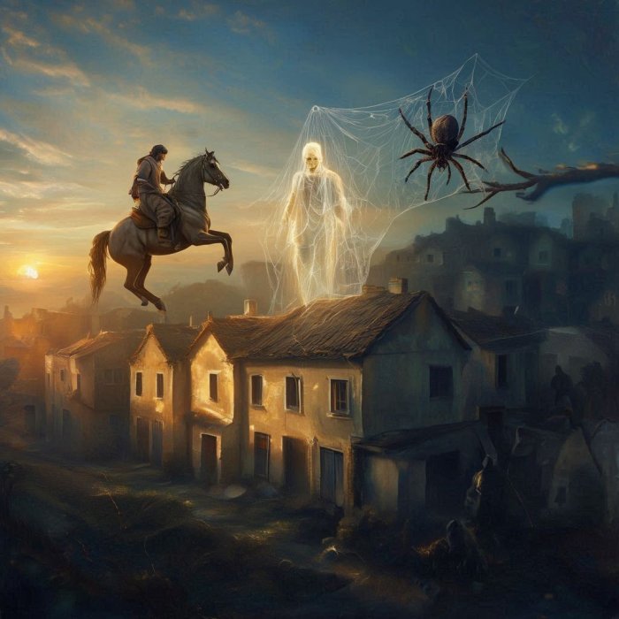 vole tamu. Pauk tka mrežu preko svetla,