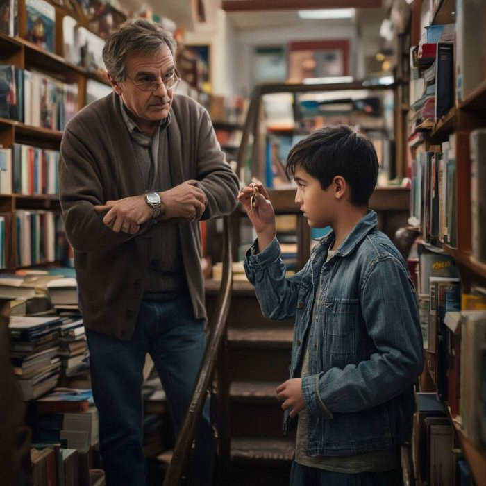 Kada sam ponovo sišao u knjižaru, otac mi je uputio inkvizitorski pogled i konsultovao ručni sat.