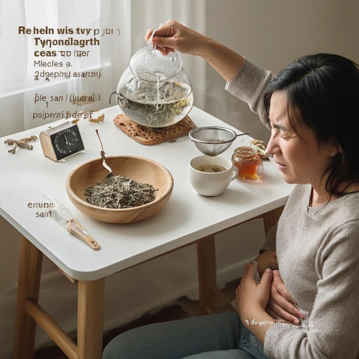 Pelin, nana, lincura, kadulja, gospina trava u jednakim di jelovima — dobro se promiješaju. Od te mješavine jedna žlica prelije se sa 200—300 g ključale vode i ostavi stajati 2—3 sata poklopljeno. Zatim se kuha 2—3 minute, ostavi da se pari 10 minuta (poklopljeno) i ocijedi. Pije se više puta dnev no po malu šalicu.