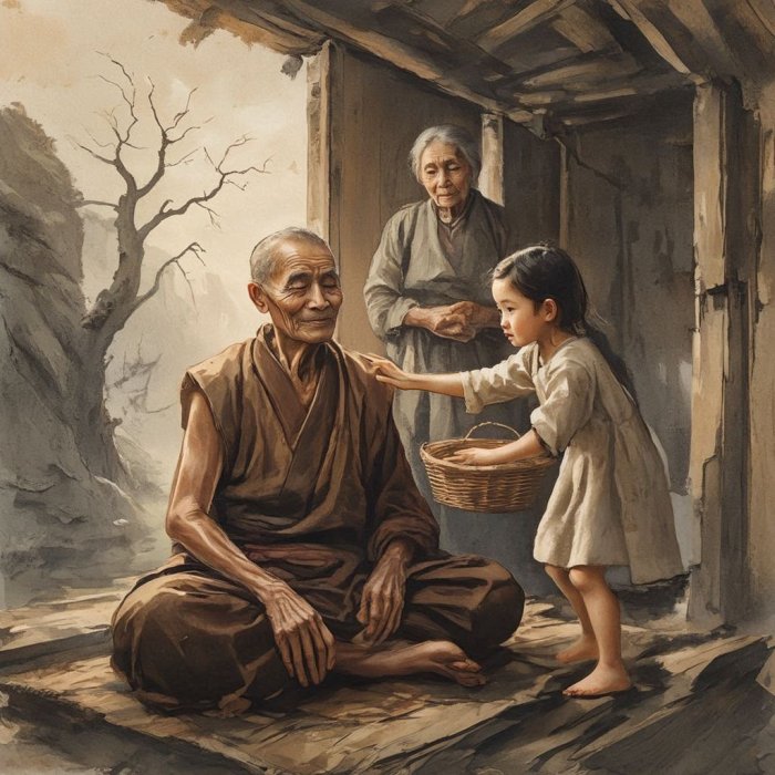 Bila jednom neka starica zena koja je podigla kolibu jednom redovniku i potpomagala ga dvadeset godina u njegovom samousavrsavanju.