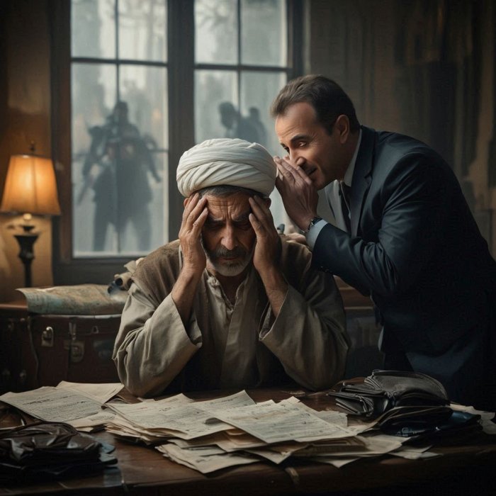 Mula Nasrudin je imao velike probleme, jer se zadužio kod mnogih ljudi, a novca nije imao da vrati dug. Pošto nije znao kako da se izvuče, upitao je svog advokata za savjet, a ovaj mu je