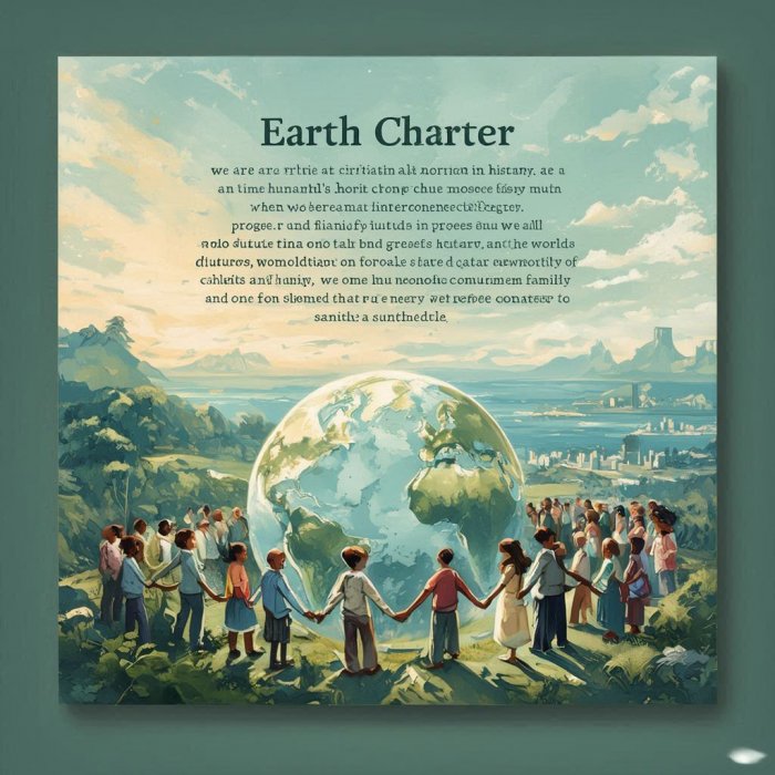 Žurno nam je potrebna zajednička vizija osnovnih vrijednosti koja će predstavljati etički temelj za svjetsku zajednicu u nastajanju. Stoga zajednički i ispunjeni nadom utvrđujemo sljedeća međuovisna načela održivog načina života kao opći standard po kojemu se može ravnati i procjenjivati vladanje svakog pojedinca, organizacije, poslovne tvrtke, vlade i transnacionalne ustanove.