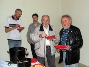 Tako u razgovoru popismo više pivica, stari dobri drugari: Ivo Kajzer, Božidar Ermenc i Borivoj Bukva. Na fotografijama Ivo i Boro nazdravljaju si, i Božidar dijeli paštu s prilogom Bori.