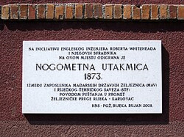 Prva nogometna utakmica na području Hrvatske odigrana je u Rijeci. Godine 1873. na inicijativu Roberta Whiteheada, inženjera i vlasnika tvornice Torpedo, utakmicu su odigrale ekipe sastavljene od djelatnika Mađarskih željeznica s jedne i engleskih radnika s druge. Englezi su radili u tadašnjem Riječkom tehničkom zavodu (Stabilimento Tecnico di Fiume) koji kasnije postaje tvornica Torpedo, a utakmica je odigrana na području poznatom kao Pod Jelšun, između ulaza u bivšu tvornicu Torpedo i INA-ine rafinerije na Mlaki.