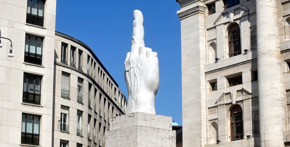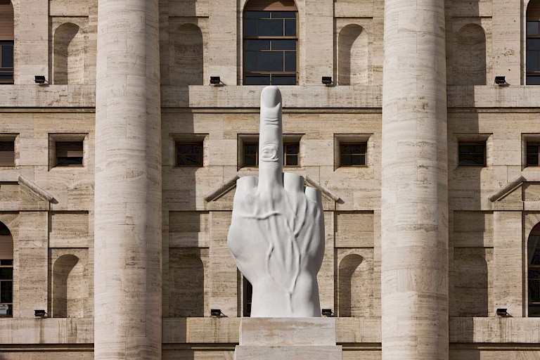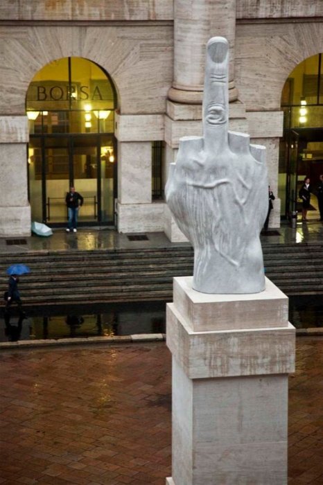 Na Milanskom trgu affari otkriven je novi - najkontroverzniji spomenik na svijetu: Maurizio cattelan - Srednji prst. Spomenik je izrađen u mramoru i visok je 4 metra. Smješten je ispred talijanske zgrade za burzu