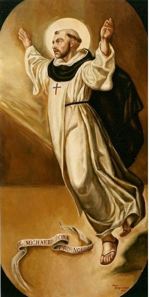 Današnji sveti zaštitnik je Mihael de Sanctis (Miguel de los Santos), katalonski bosonogi trinitarac. Rodio se kao Miguel Argemir 29. rujna 1591. u katalonskom gradu Vicu (kotar Osona). Ostao je u 11. godini bez oca i od rane mladosti želio postati redovnik, ali njegova rodbina je to priječila. Napokon je 1603. primljen u samostan trinitaraca u Barceloni, a nakon položenih zavjeta u samostanu svetog Lamberta u Zaragozi, 1607, stupio je u Madridu u strožu granu istoga reda, bosonoge trinitarce. Studirao je na slavnim andaluzijskim sveučilištima u Sevilli i Salamanki, položio svečane zavjete u gradu Alcalá de Henares i postao svećenikom.