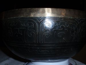 U sredini zdjele, na dnu nalazi se ugravirani crtež tibetanske božice Tare..