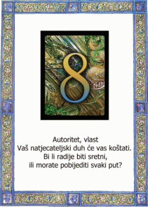 8 – OSAM: Sve kod vas ima praktičnu vrijednost. Sve što radite, radite u svoju korist. Za vas je i ljubav korisna, pa ne ulazite u veze bez razmišljanja o koristi koju vam mogu donijeti.  Također i vaši prijatelji su vam poslovni partneri, osobe od kojih biste mogli imati korist. Niste negativna osoba, samo praktičar.